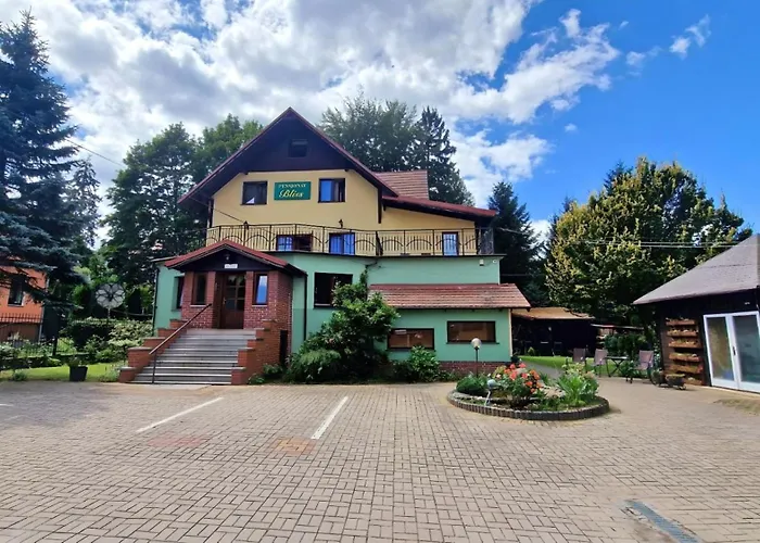 Pensjonat Villa Polanica, zlokalizowany w zabytkowym dworku, zapewnia gościom dostęp do stylowych pokoi oraz komfortowych udogodnień. W obiekcie znajduje się restauracja oferująca lokalną kuchnię oraz kompleks rekreacyjny z sauną. Proximity do znanych szlaków turystycznych czyni go idealnym miejscem dla entuzjastów górskich wędrówek. Goście mają również możliwość korzystania z biblioteki oraz strefy spa, zwiększając komfort pobytu.