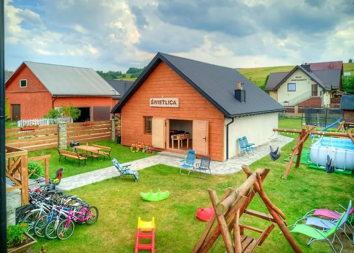 Apartamenty Maja oferują przestronne apartamenty z widokiem na góry oraz dostępem do odkrytego basenu. Kuchnia w apartamentach jest w pełni wyposażona, co umożliwia samodzielne przygotowanie posiłków. Obiekt znajduje się w niewielkiej odległości od Muzeum Nikifora, oferując jednocześnie wygodny dostęp do pobliskich atrakcji. Maja wyróżnia się komfortowymi udogodnieniami oraz dogodnymi warunkami wypoczynku. Dodatkowym atutem jest taras grillowy, idealny na spędzanie miłych chwil z rodziną czy przyjaciółmi.