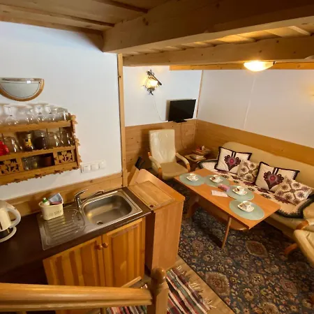 Etiuda Zakopane provides a cozy holiday home experience with fully furnished rooms and communal areas for relaxation. Located just 1 km from Aqua Park, guests can also enjoy a garden and terrace. The kitchen comes equipped with modern appliances, ideal for those who prefer to cook their own meals while away from home.